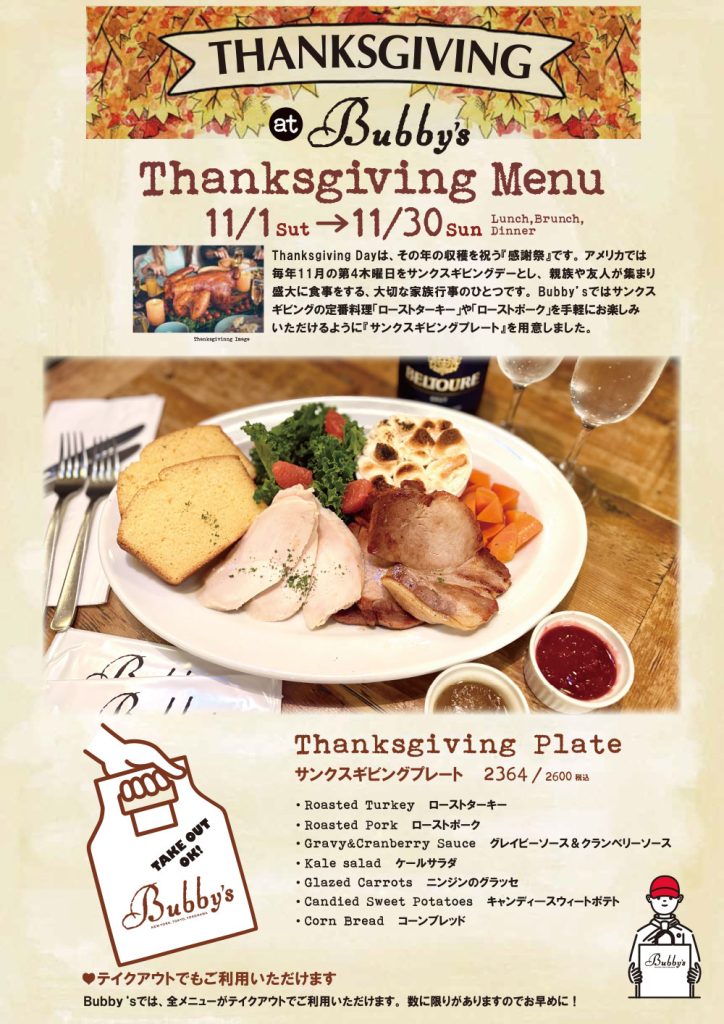 バビーズでは今年も、サンクスギビングデーの定番料理『ローストターキー&ローストポーク』を手軽にお召し上がりいただける『サンクスギビングプレート』を期間限定で販売いたします。
